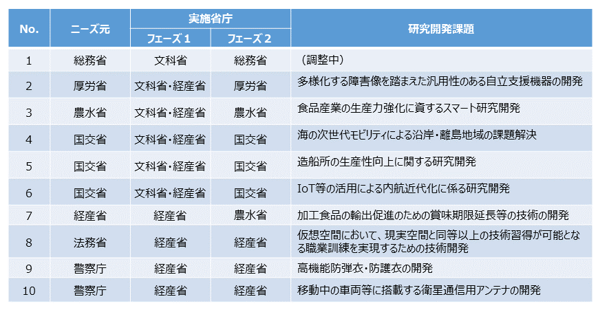 ※2 一気通貫型トピック:1つの省庁で各フェーズを一気通貫で運用する研究開発課題のことをいう。
